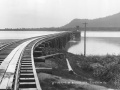 The steel bridges were converted to highway use in 1956-1957, and the timber trestle sections were replaced with piles made of three welded rails, concrete caps, and steel stringers. It served as a link in the growing Copper River Highway until the Good Friday Earthquake of 1964.